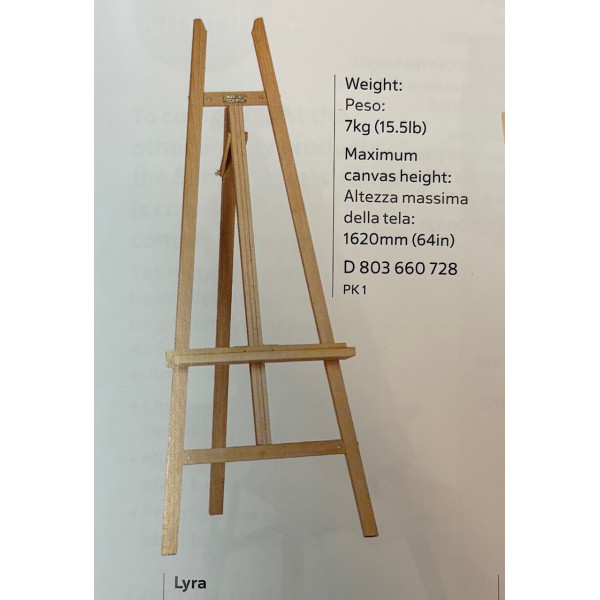 Cavalletto in legno di faggio oliato con porta tela regolabile. Peso 7kg. Altezza massima della tela 1620mm.