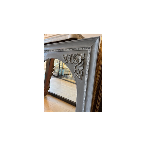 Doppia cornice: pannello interno ad arco e fregi e cornice a rifinitura.