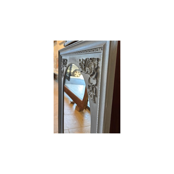Lavorazione in grigio con sfumature bianche. Misura interna dell'arco: 50x70cm o 53x80cm, con cornice la misura completa è di 70x90cm circa o 73x100cm circa.