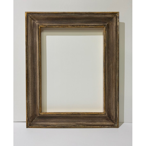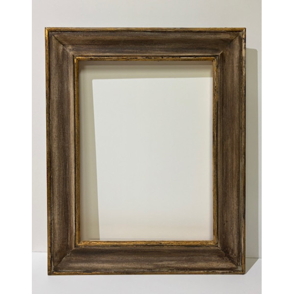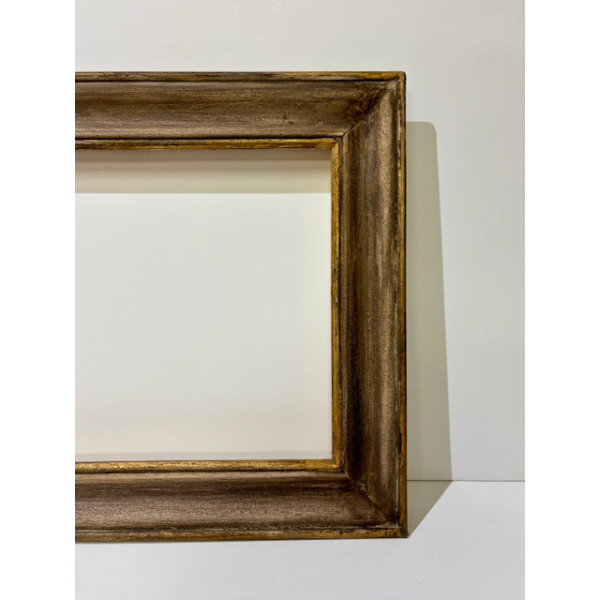 Cornice noce con graffiature e filo interno ed esterno in foglia oro.