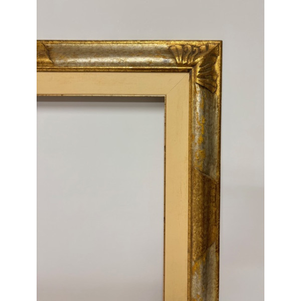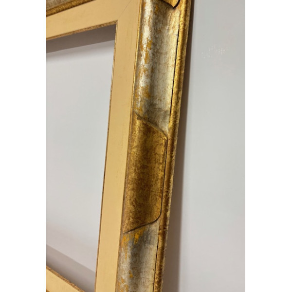 Cornice fatta a mano a foglia argento con lavorazioni centrali e sugli angoli in oro foglia.