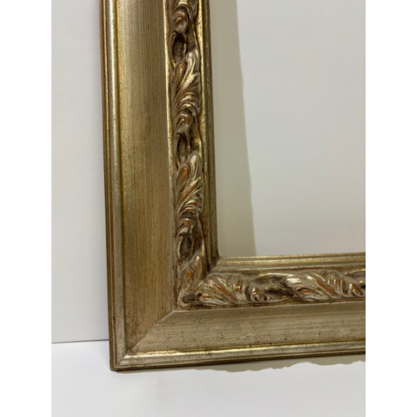 Cornice con decori interni e finitura a foglia argento con invecchiature.