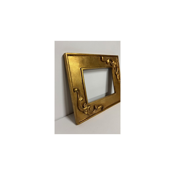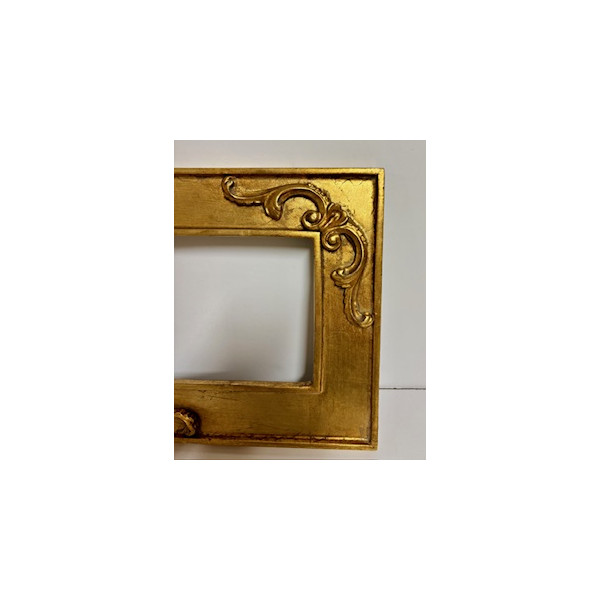 Cornice in oro foglia con fregi su due angoli.