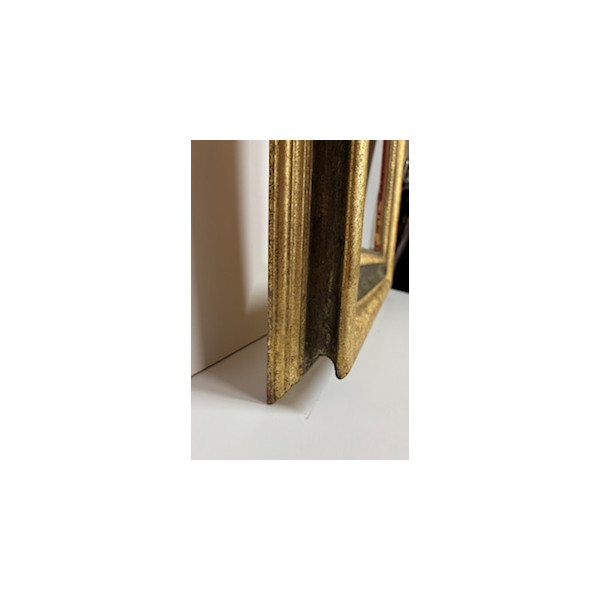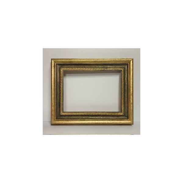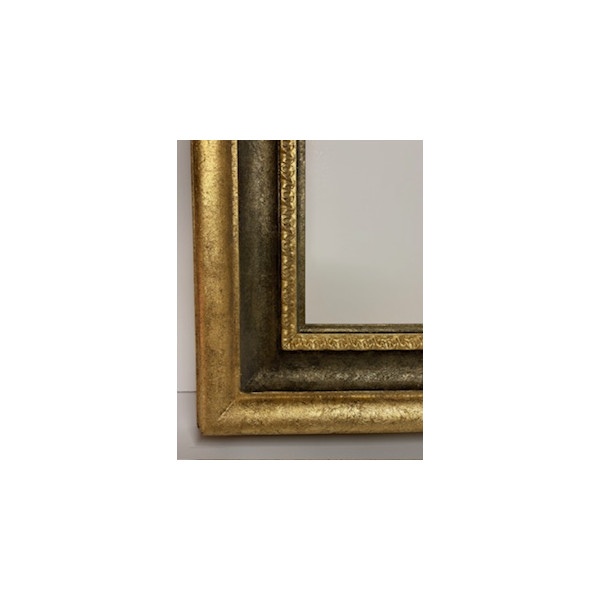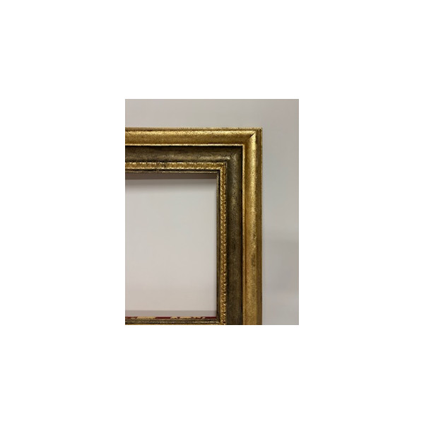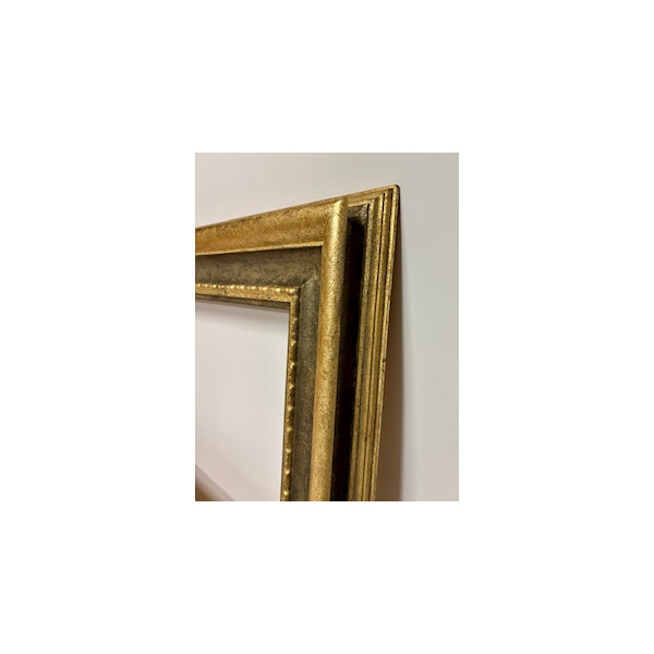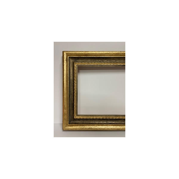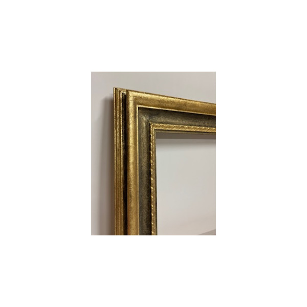 Cornice a foglia oro in rilievo e con gola centrale e gola interna grigia.