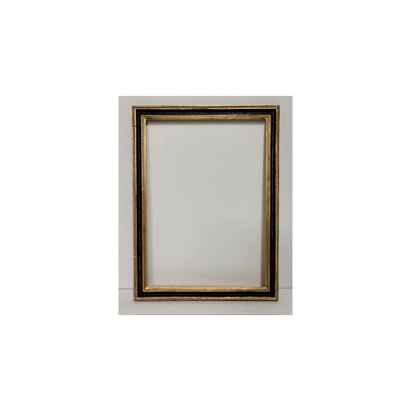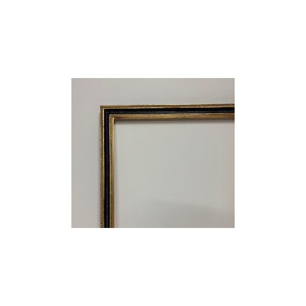 Cornice con doppio filo oro, gola centrale e laterale nera. Doratura a foglia dorata.