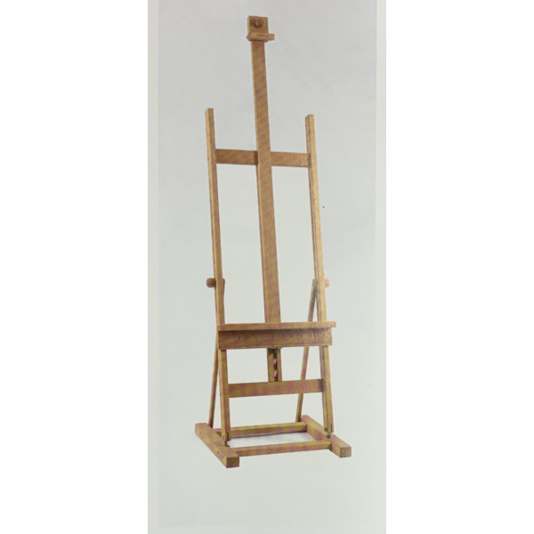 Cavalletto grande da studio in legno di faggio Maimeri. Il movimento a cremagliera regola l'altezza del porta telai e il vano portacolori è ampio: 39cm di larghezza, 7cm di profondità e 6cm di altezza.